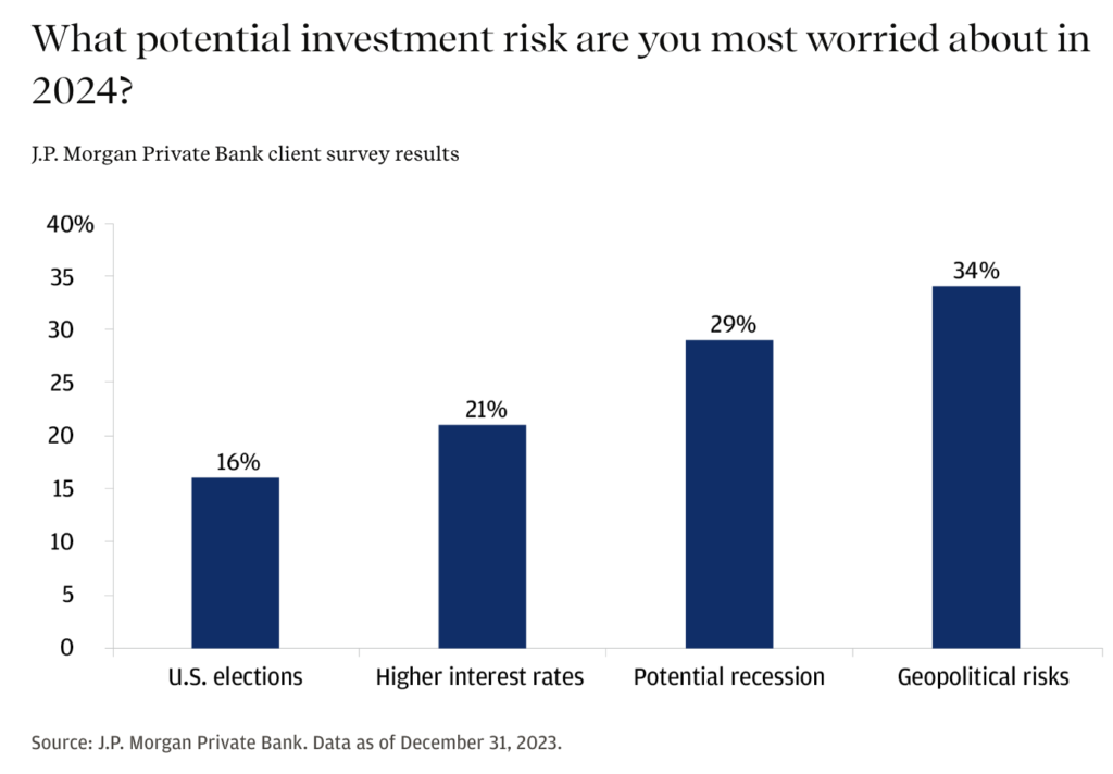 📊 According to the survey, 34% of respondents cited geopolitical risk as the biggest investment concern in 2024.